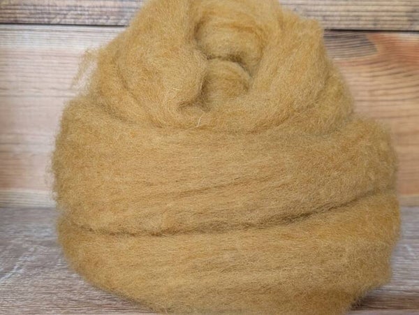 Golden sands Corriedale carded sliver. Versatile wool fibre suitable for needle felting, wet felting, weaving, spinning and other fibre crafts.