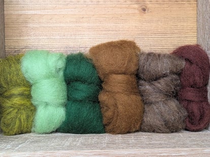 Pack of six different colours of carded slivers, approximately 10grams of each colour. A good selection for felting landscapes.